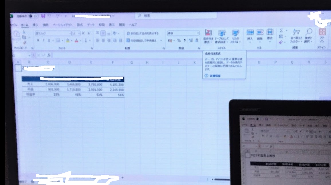 めちゃくちゃ白く消してるけど(笑)、右下が新パソ子(仮名)、その背景がテレビ画面である。