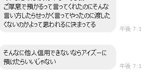 してる事を考えろだの、誤字まみれの怖い恫喝メッセージに襲われた。それを絶縁し