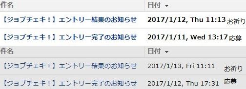 凄いでしょ?半日後には速攻お祈りメール。時間は決まって、午前11時過ぎ。