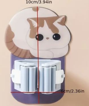 『かわいい猫柄モップホルダー、壁掛けモップほうきクリップフック』(←サイトに